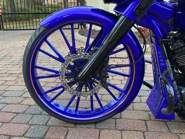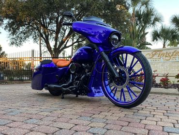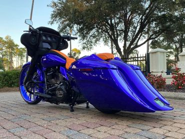 2021 Custom Street Glide with our Signature VIP Candy Blue & Orange 26”